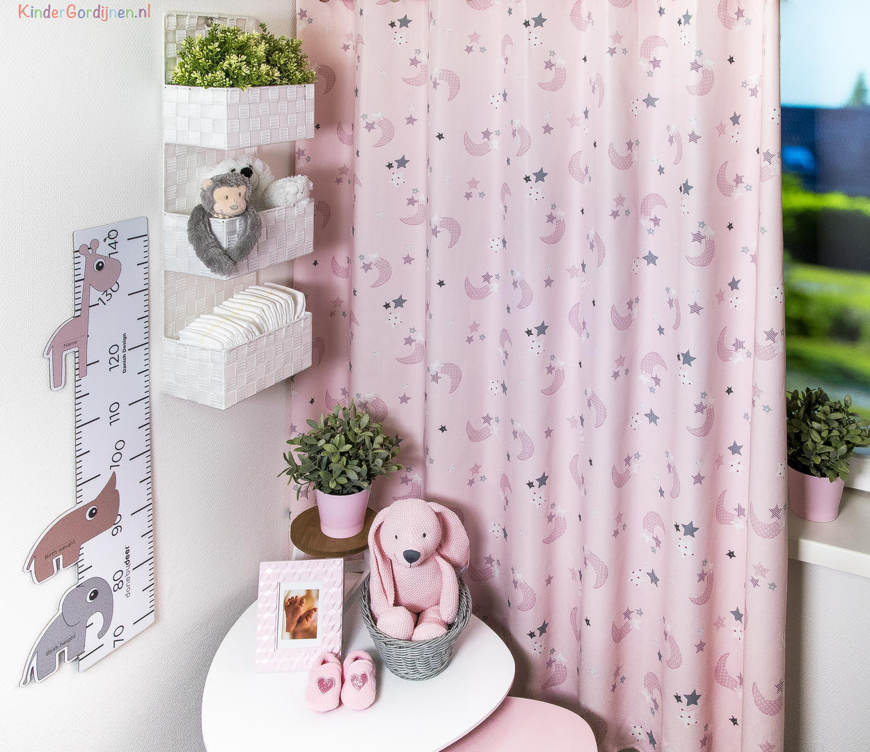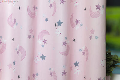 Wat een schitterende kwaliteit gordijnstof! Zien is geloven, zo mooi soepel geweven én maar liefst 280 cm breed! Dat betekent dat het babykamer gordijn meestal naadloos kan worden gemaakt. De is print is gedrukt op een heel fijn geribde stof, wat een vlotte & sportieve uitstraling geeft. Het sterretjes & maantjes patroon is leverbaar in 3 verschillende ondergrondkleuren. Eigentijds blauw- grijs voor de jongenskamer, pastel roze - grijs voor meisjes slaapkamer en camel grijs voor als je liever geheim wilt houden welk lief kleintje er komt slapen. De maan is hier 7 cm groot en samen met de sterren ernaast 9 cm breed. Door het rustig herhalende patroon kan je dit gordijn uitstekend tot de grond laten confectioneren. Wanneer je graag extra verduistering wenst dan optie voeren aanvinken in het bestelproces. Kortom, deze fraaie stofserie is een aanwinst binnen onze enorme collectie!