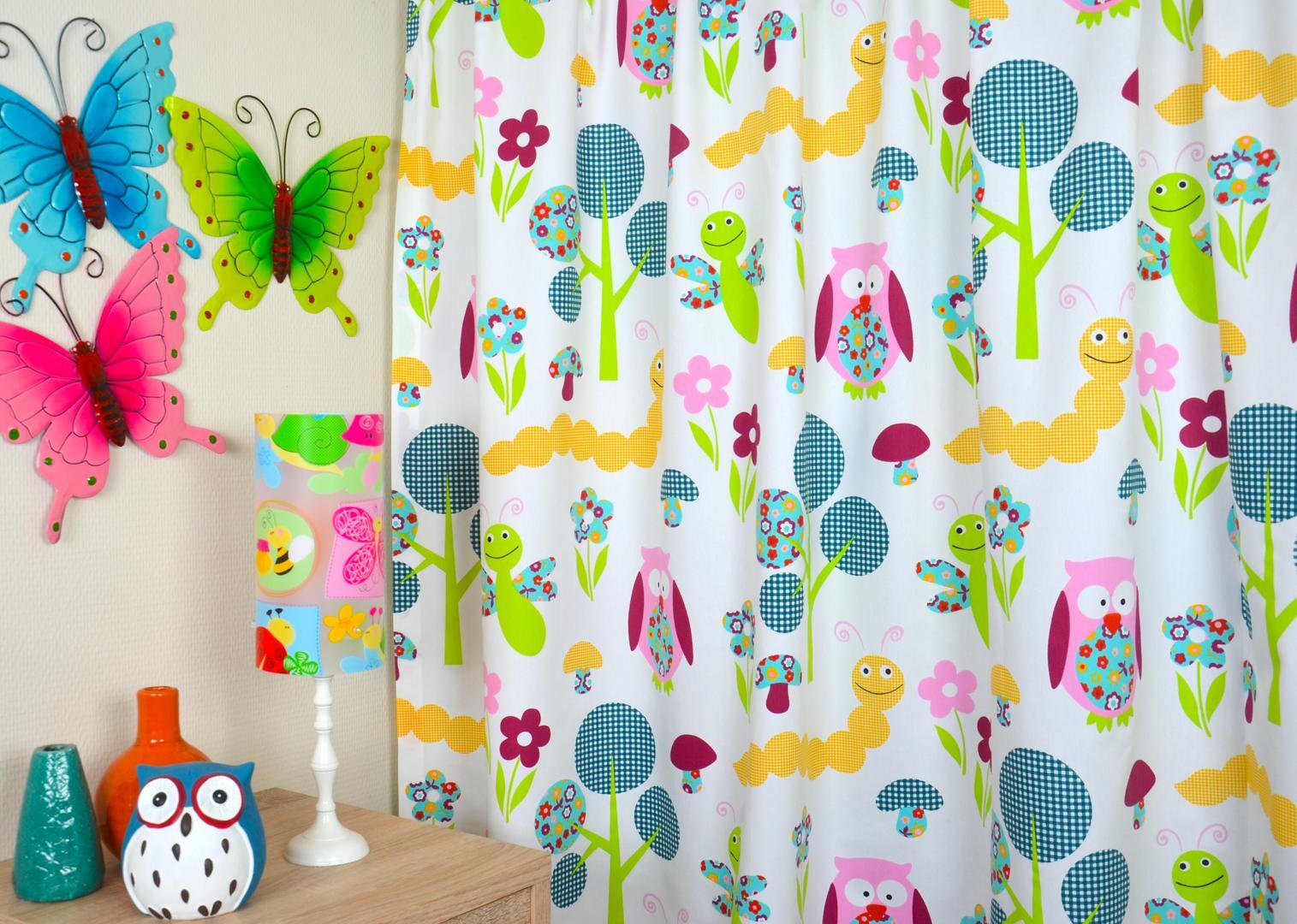 Leuke en nostalgische kindergordijnen in vrolijke kleuren. Het boompje is 25 cm hoog en 20 cm breed. Ook de uil is +/- 15 cm groot. Door het royale patroon is de stof zeer geschikt voor grotere raamoppervlaktes. De stof is glad geweven en kan verduisterend gevoerd worden. Mogen deze vrolijke beestjes bij jou komen wonen?