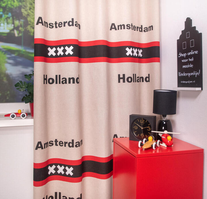 Deze gordijnstof met de naam Amsterdam postzak is gemaakt van de beste materialen waardoor het gordijn mooi in de plooi valt.