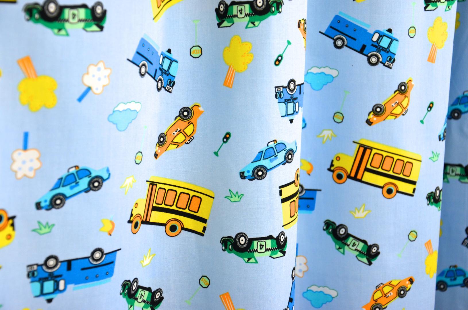 Decoratief jongensgordijn waar verschillende autootjes in te ontdekken zijn. Van Yellow Cab tot ambulance. De autobus is het grootst afgebeeld en 3 x 8 cm. De autoprint is gedrukt op soepelvallende, fijn geweven stof. Voeren voor verduistering is mogelijk en ook kussentjes mee bestellen maakt het thema helemaal af. “TUUT TUUT, tot gauw!”