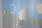 Super fraaie en luchtige voile. De wolken zijn er op geborduurd, wat extra reliëf en diepte geeft. Deze aaibare structuur geeft bij zgn. “harde” vloeren en gestuukte wanden, net dat beetje extra zachtheid. Een warm-wit-wolkendek, wie wil dat nu niet als vitrage? Door de neutrale kleur is het transparante gordijn tijdloos en makkelijk te combineren. Denk aan fraaie kiezelkleuren en warm-grijzen. Kortom voor iedere kinderkamer een super voile!