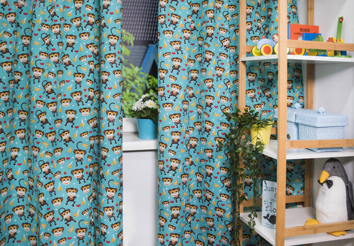 Een prachtig gordijn voor je raam! Als jij je eigen gordijnen kiest, wordt het helemaal jouw kamer. Deze gordijnstof met de naam Monkey's is gemaakt van de beste materialen waardoor het gordijn mooi in de plooi valt. Het aantal te gebruiken banen gordijnstof van 140 cm breed wordt door ons vakkundig aan elkaar geconfectioneerd zodat het patroon van 64 cm mooi doorloopt. Laat voor een aangename isolatie en extra verduistering de gordijnen voeren: een verschil van dag en nacht!