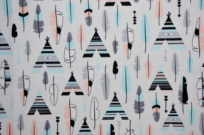 Schattige gordijnen voor de kinderkamer met tipi print. 100% katoen. Voor verduistering even voering toevoegen in het bestelproces.