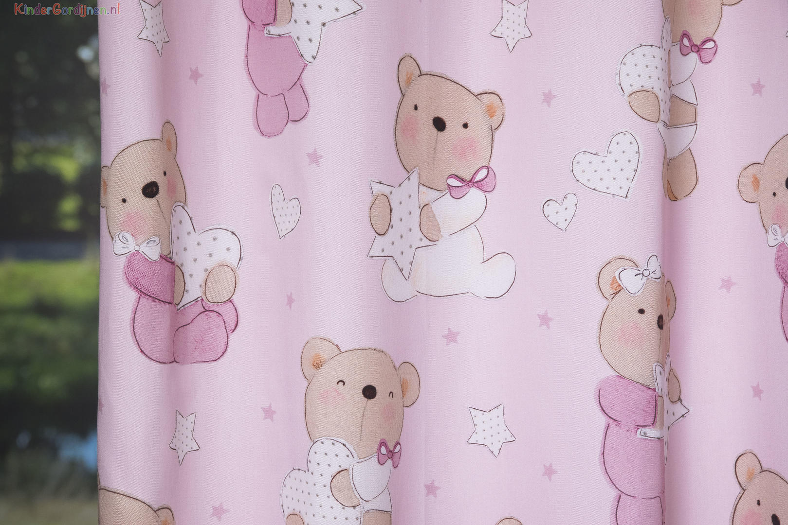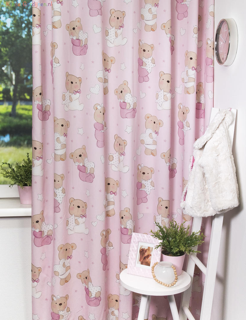 Wat een schitterende kwaliteit gordijnstof! Zien is geloven, zo mooi soepel geweven én maar liefst 280 cm breed! Dat betekent dat het babykamer gordijn meestal naadloos kan worden gemaakt. De schattige beren print is gedrukt op een heel fijn geribde stof, wat een vlotte sportieve uitstraling geeft. De teddybeertjes zijn op de voorzijde gedrukt, maar liefst 22 cm groot en leverbaar in 3 verschillende ondergrond kleuren. Eigentijds vergrijsd blauw voor de jongenskamer, pastel roze voor meisjes slaapkamer en warm zachtgrijs voor als je liever geheim wilt houden welk lief kleintje er komt slapen. Door de royale print kun je het gordijn uitstekend tot de grond laten confectioneren. Wanneer je extra verduistering wenst, graag optie voeren aanvinken in het bestelproces. Kortom, deze fraaie stofserie is een aanwinst binnen onze enorme collectie! ~Have a happy teddybear day~