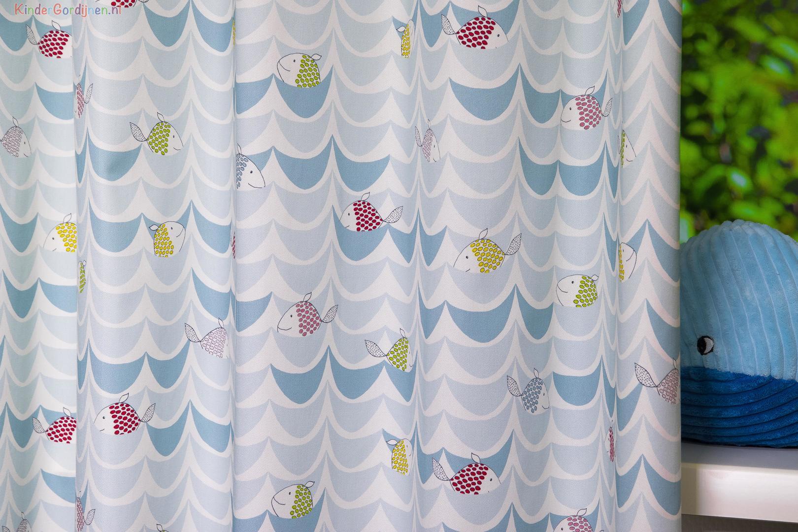 Wat een schitterende kwaliteit gordijnstof! Zien is geloven, zo mooi soepel geweven én maar liefst 280 cm breed! Dat betekent dat het babykamer gordijn meestal naadloos kan worden gemaakt. De schattige visjes print is gedrukt op een heel fijn geribde stof, wat een vlotte sportieve uitstraling geeft. De visjes in de zee zijn op de voorzijde gedrukt, 3 cm groot en leverbaar in 2 verschillende “zee” kleuren. Eigentijds vergrijsd blauw en warm perzik roze. Door het rustig herhalende patroon kan je dit gordijn uitstekend tot de grond laten confectioneren. Wanneer je extra verduistering wenst, graag optie voeren aanvinken in het bestelproces. Kortom, deze fraaie stofserie is een aanwinst binnen onze enorme collectie!