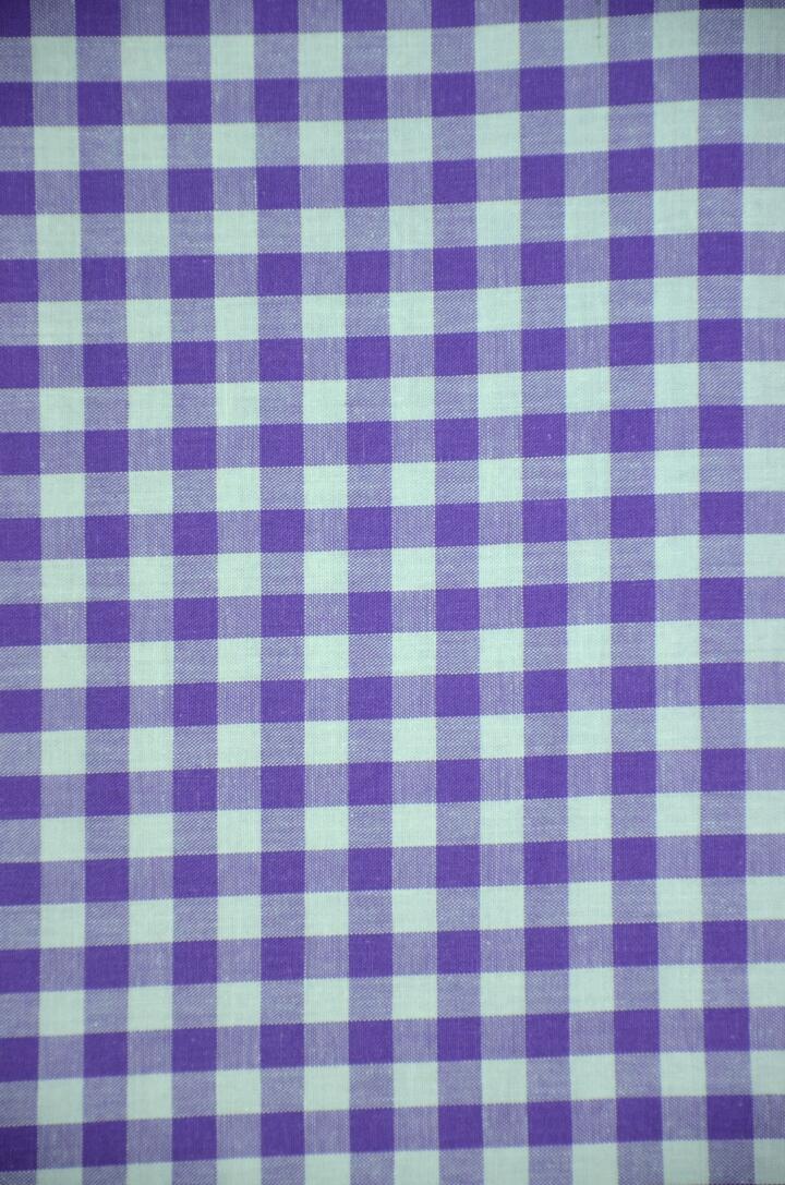 Dit overgordijn met neutraal ruitmotief is leverbaar in veertien verschillende kleuren. De ruit is ongeveer 1,5 centimeter.