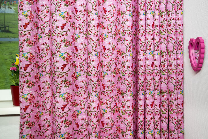 Echte meidengordijnen boordevol rozen, vlinders en vogeltjes. De Daisy gordijnen zijn verkrijgbaar in acht verschillende uitvoeringen en creëren een romantische sfeer in de kinderkamer.