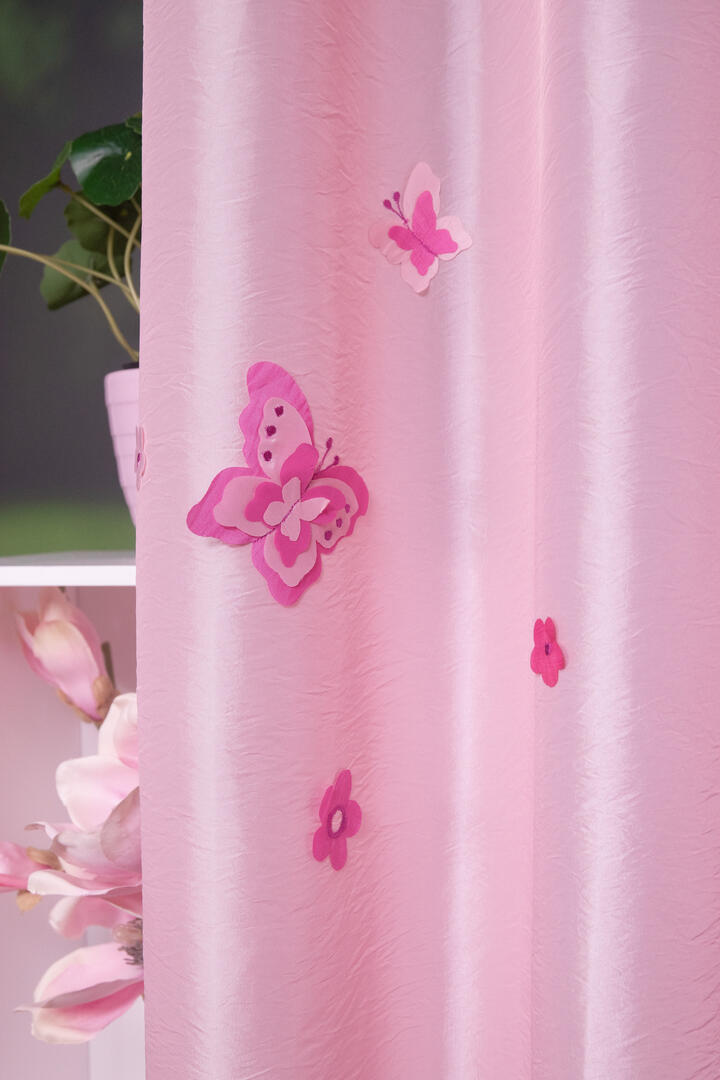 Wil je iets unieks? Kijk dan eens naar deze duurzame zacht roze gordijnstof, het is alsof de opgestikte 3d vlinders zojuist zijn geland!