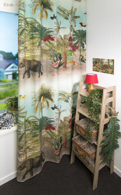 geconfectioneerd zodat het jungle en safari patroon van 132 cm mooi doorloopt.