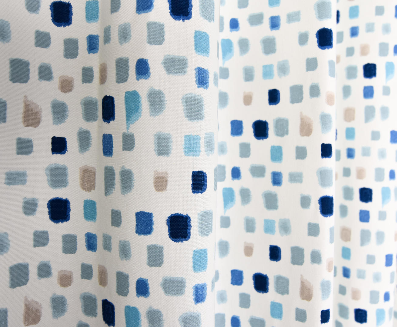 Een gordijn welke geschikt is voor zowel de jongens- als meisjeskamer. De kleuropbouw is n.l. van donkerblauw, naar jeans, aqua en subtiel warm grijs. Je kan bij een meidenkamer heel leuk een wand aqua blauw maken of misschien de wat neutralere kiezelgrijze tint. Voor de jongens is het vergrijsde blauw leuk of durf je zelfs de diep donkerblauwe kleur? Jeanslook behang kan óók super zijn! Kortom, met dit gordijn kan je alle kanten op. Tijdloos en makkelijk te combineren. De stof is mat en heeft een sportieve, ietwat geruwde structuur. We hebben deze stof voorradig, dus vlotte levering is gegarandeerd!