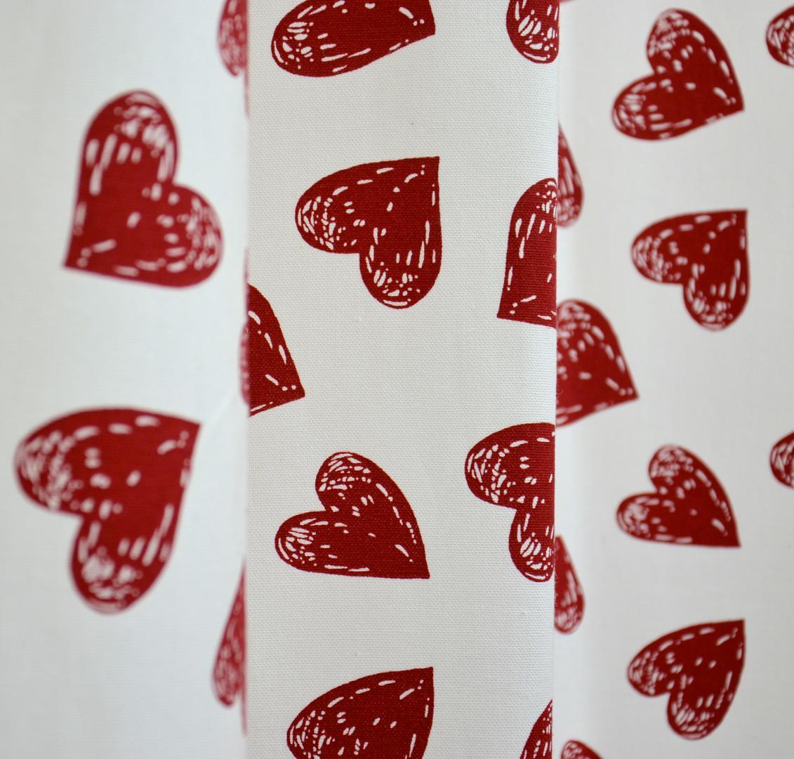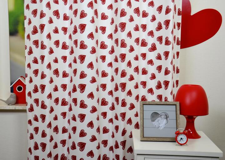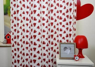 Hartjes zijn een klassiek symbool voor liefde, dat door iedereen over de hele wereld wordt gebruikt. Ook in de kunst wordt het hart vaak gebruikt om liefde te verbeelden. Op dit gordijn zijn eindeloos véél hartjes, voor dé echt romantische meiden! De stof is mat en soepelvallend. Een hartje is 5 cm groot en dieprood van kleur. Heeft dit gordijn ook al jouw hart gestolen? Wanneer je graag donker slaapt, even laten voeren.