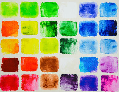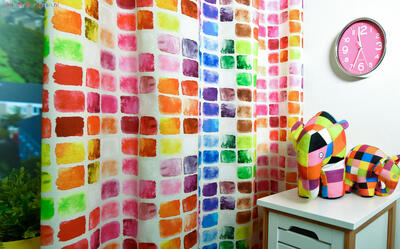 Wat een super breed kleurpallet! Dit gordijn is als een kunstenaarsdoek, al die verschillende kleurtonen. De aquarel blokjes zijn 4,5 x 4,5 cm groot en gedrukt op matte, warm witte stof. Door de geschilderde techniek en het regenboog-achtige verloop, is het subtiel en zeker niet te druk. Het gordijn is excentriek, voor de creatievellingen onder ons! Voor extra verduistering, desgewenst voeren.