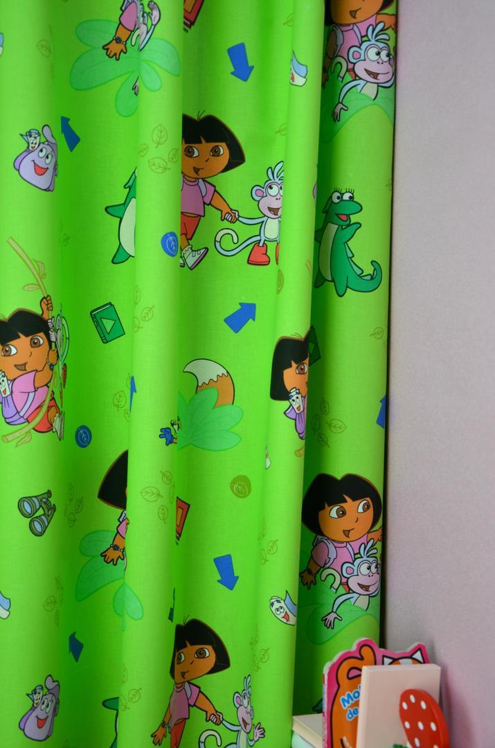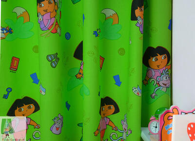Wie kent Dora de Explorer niet? Samen met Boots, Rugzak, Kaart en Zwieber de Vos gingen ze het ene naar het andere avontuur tegemoet. Op dit kindergordijn zijn ze in de jungle. Heel erg mooi voor de avontuurlijke jongens en meisjeskamers. Het kindergordijn is gemaakt van 100% katoen en hierdoor valt hij lekker soepel en is hij lekker zacht. Deze mooie kleur groen staat heel mooi in een neutrale witte kamer. Wil je hem nu eerst een keer voelen en zien dan kun je een knipstaal kopen en dan kun je het zelf voelen en zien.