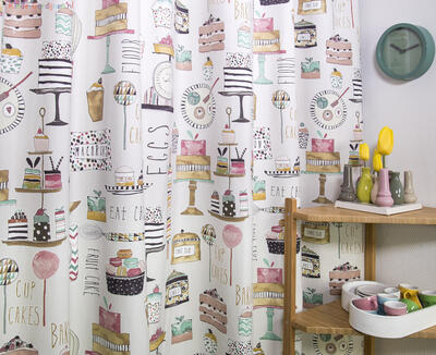Deze gordijnstof met de naam Eat Cake is gemaakt van de beste materialen waardoor het gordijn mooi in de plooi valt.