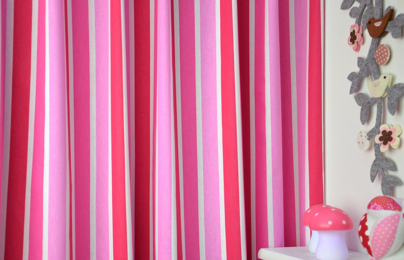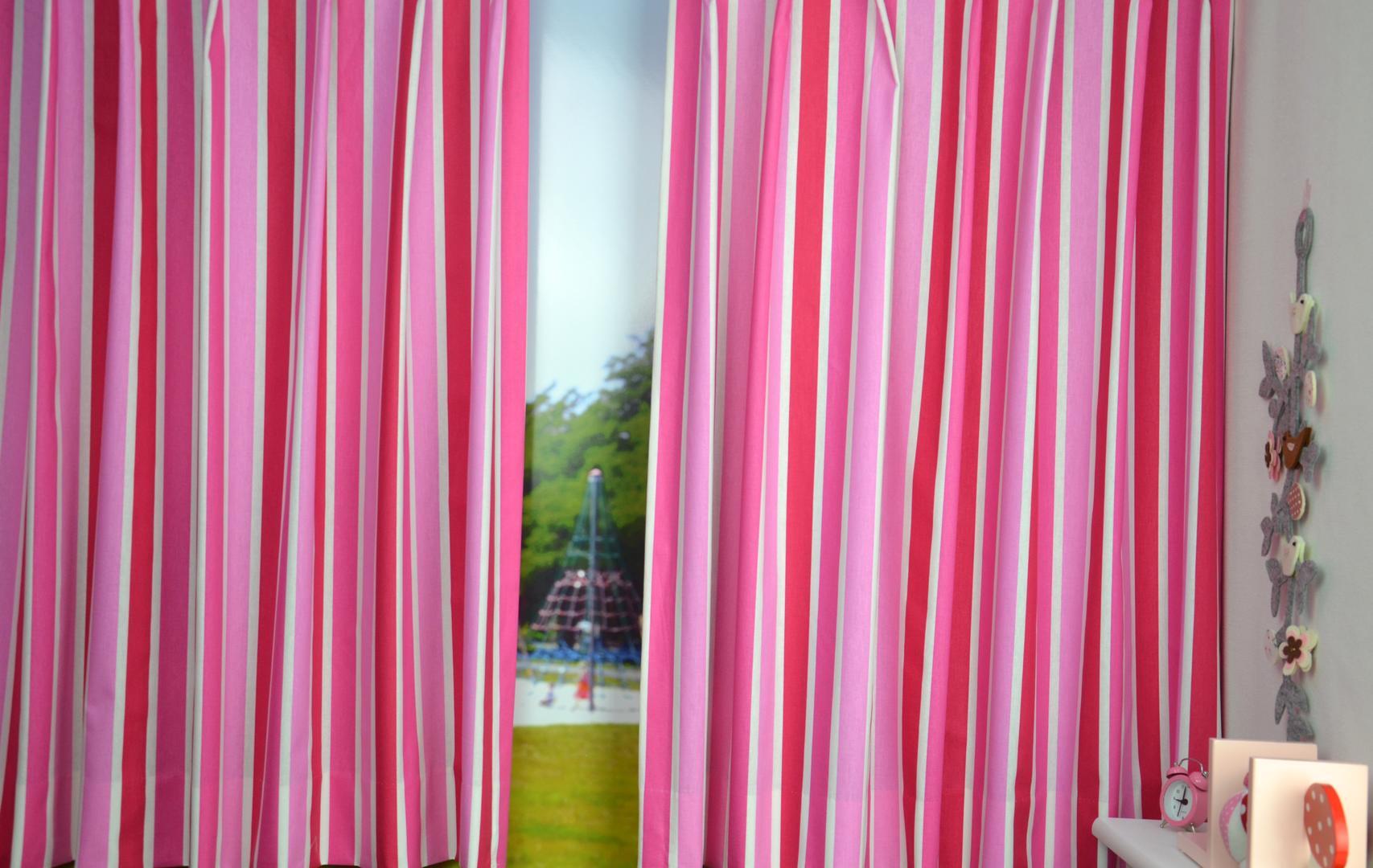 Kleurrijk gordijn met een eenvoudig streepmotief in de lengterichting. Dit tijdloze kindergordijn is beschikbaar in zeven verschillende uitvoeringen en past in vrijwel iedere kinderkamer.