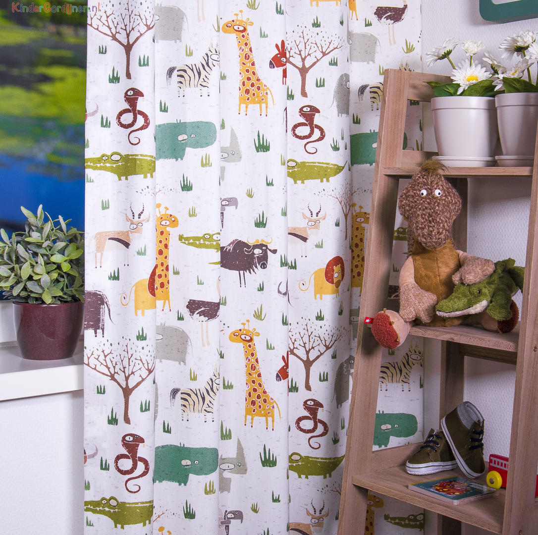 geconfectioneerd zodat het jungle en safari patroon van 64 cm mooi doorloopt.