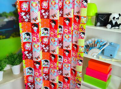 Kleurrijke meisjesgordijnen met een knipoog naar het sprookjesachtige Japan. Het serene meisje met waaier, de goudvisjes met sluierstaart en het klassieke Japanse lampionnetje. De afbeeldingen zijn gedrukt in vierkanten van 8 x 8 cm. Het thema kun je uitbreiden met bijpassende kussentjes of andere Japanse woonaccessoires. Maak van je slaapkamer een sprookje! Wie wil dat nu niet?