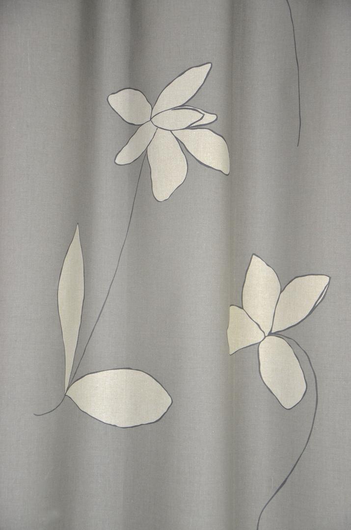 Prachtig rustgevende gordijnstof met als illustratie, pengetekende bloemen...