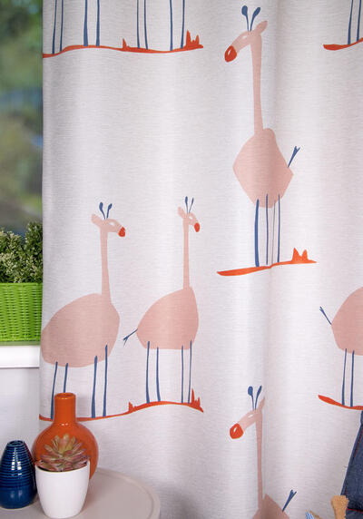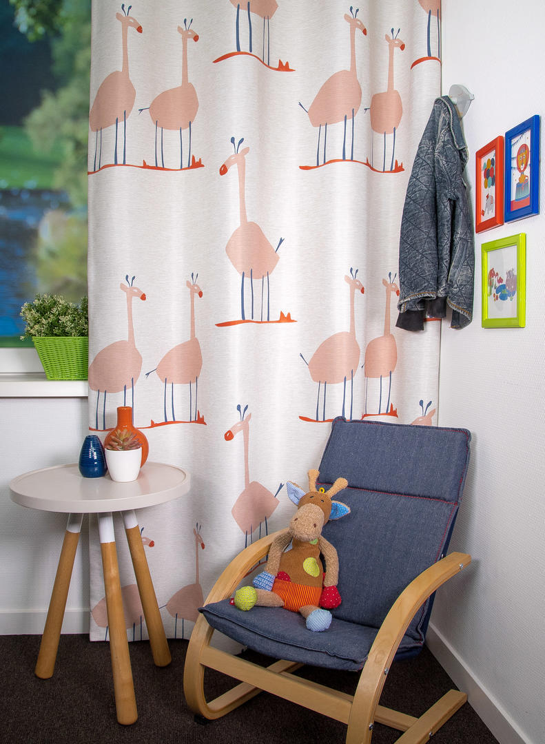 De Giraffe is een nieuwe verduisterende stof voorzien van een fraaie safari print. Het unieke is de isolerende en reflecterende achterzijde van de stof, deze zorgt er voor dat de stof warmte, koude en geluidsisolerend is.