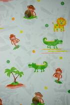 Héérlijk luchtige transparante voile, die op iedere kinderkamer héél decoratief is. Eigenlijk “kindervitrage”. De aapjes, krokodillen en leeuwen zijn afgebeeld op de egaal lichte ondergrond en aan beide zijden goed zichtbaar. De palmboom is 13 cm groot. De voile is goed tegen de inkijk, gelukkig kan je er zelf wel door naar buiten kijken. Zeker ook charmant naast een strak (verduisterend) rolgordijn. Het lijkt alsof de safaridieren in je slaapkamer wonen, word jij daar ook zo happy van? Het gordijn zoals afgebeeld op de sfeerfoto is voorzien van onze 100% verduisterende voering, waardoor een fraai moire effect ontstaat.