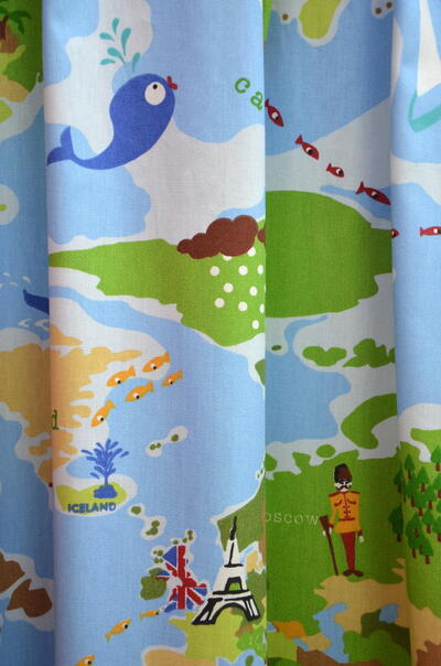 Een wereldkaartgordijn, hoe stoer is dat?! Op fraaie, matte katoenen stof is op de voorzijde de plattegrond van de wereld gedrukt. In volle en harmonieuze kleuren zie je duidelijk de landen en oceanen en hun ligging. Een ontzettend leuk & leerzaam gordijn want vanuit je bed kan je over verre reizen fantaseren. Gullivers reizen gordijn lijkt het met verschillende vrolijke highlights die je aan kunt treffen. Voor kleurbehoud van dit gave gordijn en eventueel verduistering, kun je de optie voeren aanvinken in het bestelproces. Word jij onze toekomstige globetrotter?