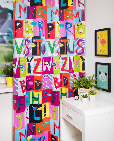 Deze gordijnstof met de naam Looking Letters (verduisterend) is gemaakt van de beste materialen waardoor het gordijn mooi in de plooi valt.