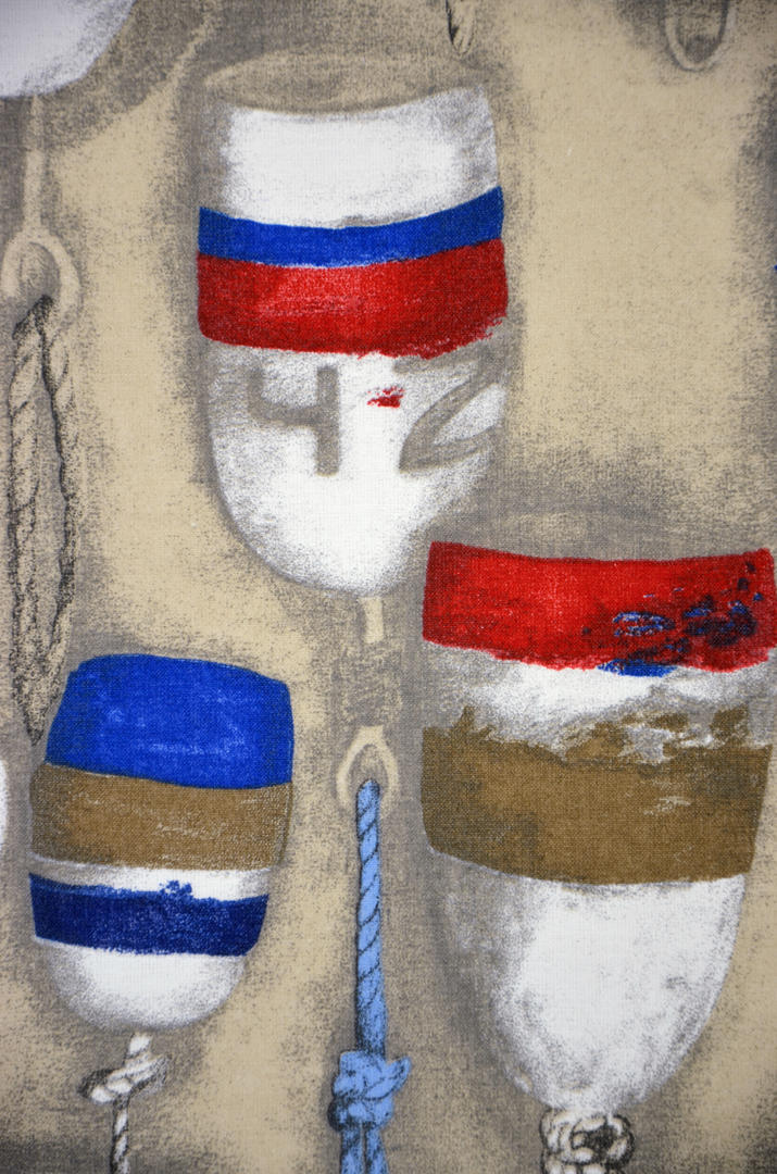 Gewéldige gordijnen voor de watersport liefhebber! De stof is aan de voorzijde bedrukt met drijvers of boeien; officieel ‘stootwill’ genaamd. De stootwil is hier zo’n 12 cm groot. De kleuren zijn toepasselijk in navy stijl gekozen. Het thema kan je uitbreiden met jacht- of zeilboot accessoires of andere strandartikelen. Voor verduistering even laten voeren.