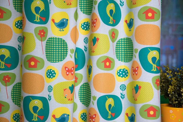 Tweet, tweet zegt Birdie, “Hoe gaat het met jou?” Een knus gordijn met die héérlijke nostalgische uitstraling. Leverbaar in 3 sprankelende kleurthema’s, geschikt voor jongens- en meisjeskamers. De ovalen zijn zo’n 5 tot 9 cm groot en gedrukt op een licht aangekleurde ondergrond. Dat geeft de stof nog meer RETRO effect. Voor extra verduistering kan je het gordijn laten voeren.