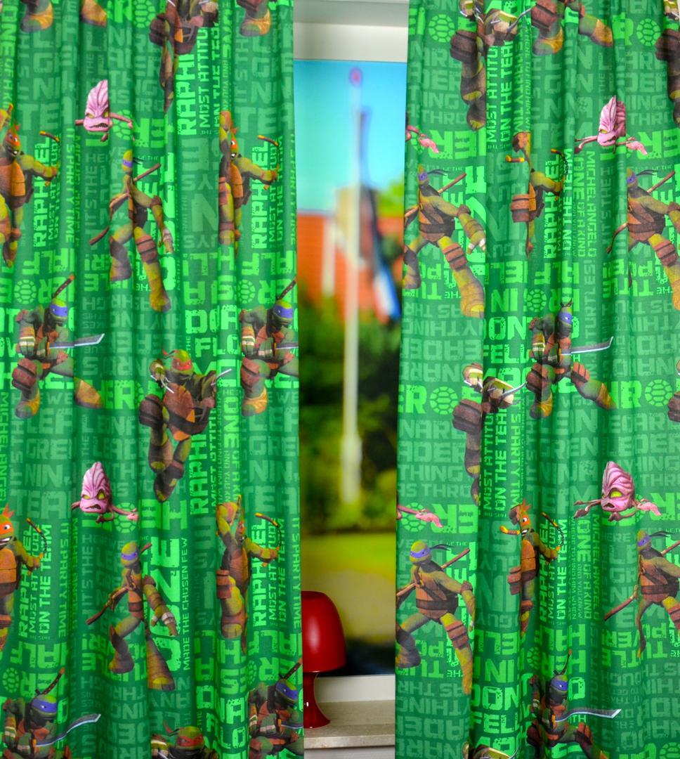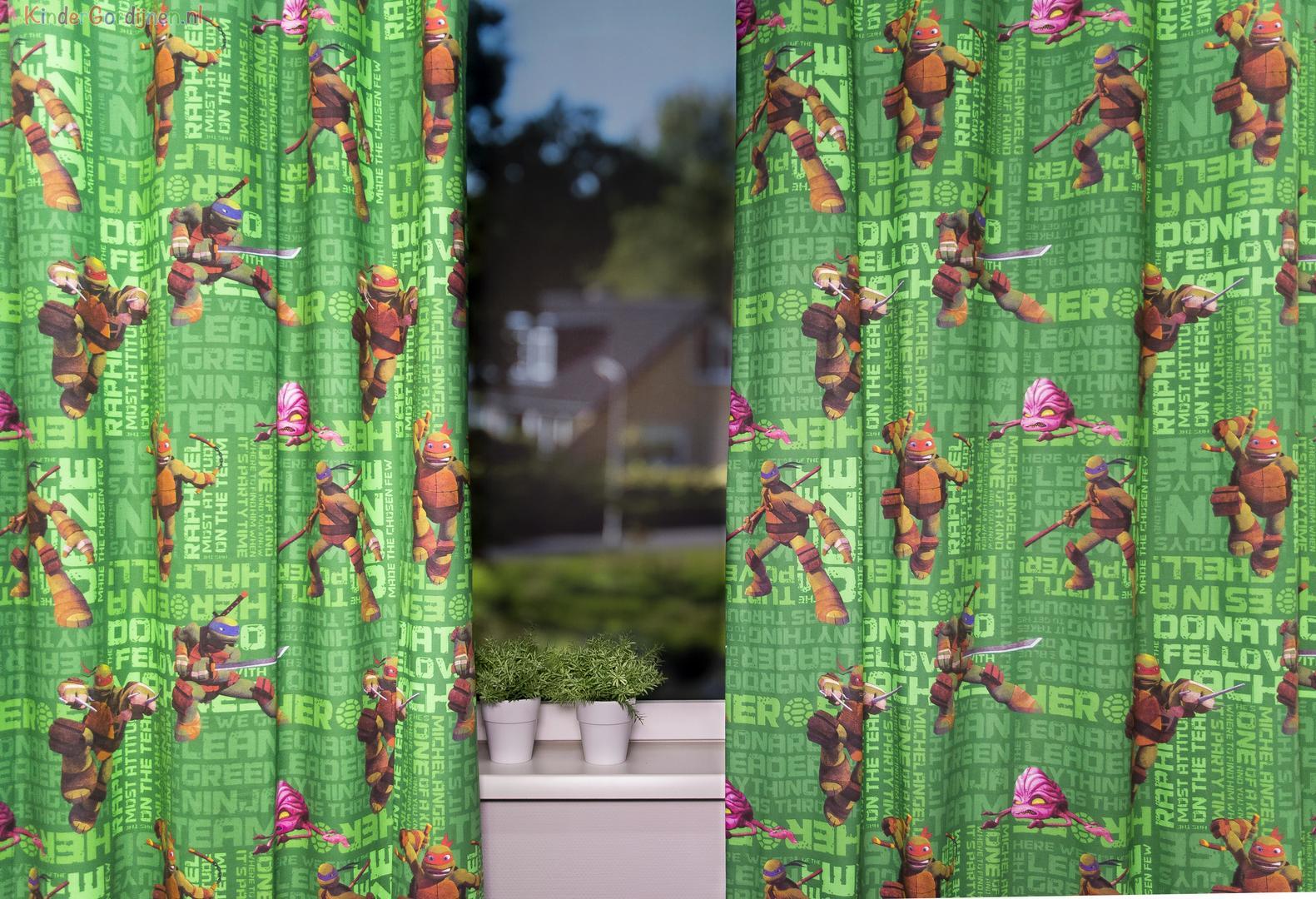 Typisch jongensgordijn voor de allerstoersten! Met deze Nina Turtles op de gordijnen is het nooit meer saai in de kinderkamer. Wilt u bijpassende kussens? Dat kan! Vink de optie aan in het bestelproces.