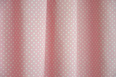 Populair kindergordijn met een eenvoudig stippenmotief tegen een roze of blauwe achtergrond. De stip heeft een doorsnede van 5mm. De katoenen gordijnstof voelt heerlijk zacht aan en kan door KinderGordijnen.nl gevoerd worden tot verduisterend gordijn.