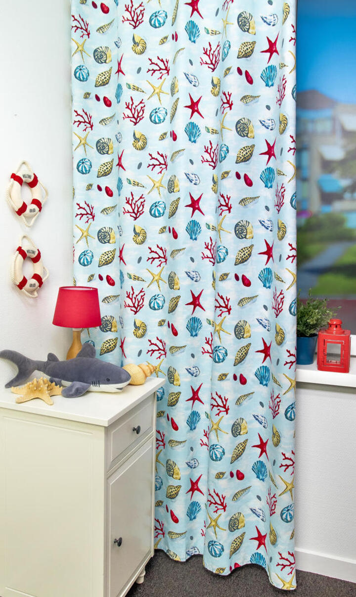 Prachtig kindergordijn voor zowel jongens als meisjes met allerlei zeeschelpen. Met deze avontuurlijke gordijnen wanen uw kinderen zich direct aan de kust! Beschikbaar in 4 verschillende uitvoeringen.
