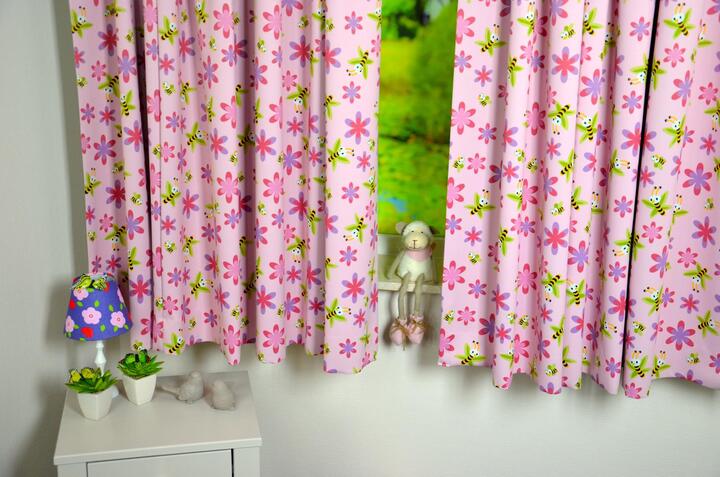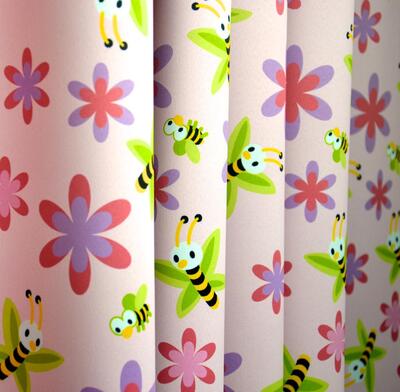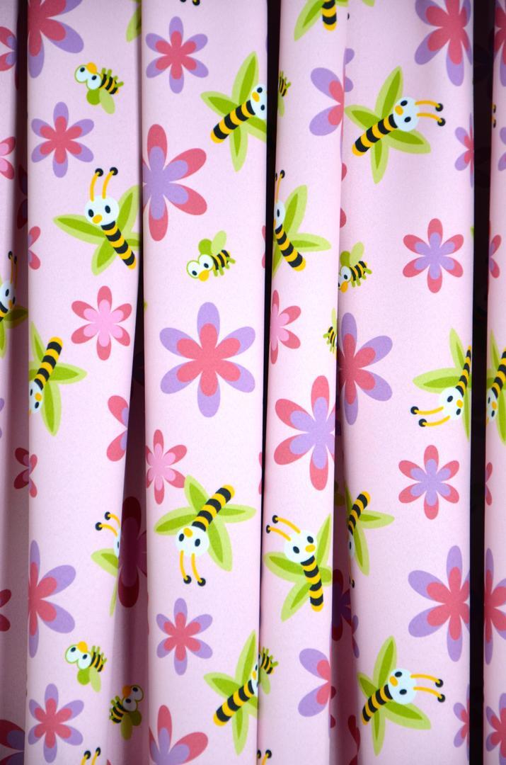 De Biene is een levendig kindergordijn die door haar bijzondere eigenschappen uitermate geschikt is voor scholen en kinderdagverblijven. De polyester gordijnstof is niet alleen verduisterend, maar ook brandvertragend volgens de DIN 4102 B1 certificering.