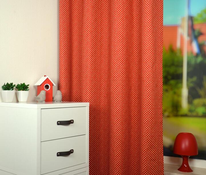Populair kindergordijn met een eenvoudig stippenmotief tegen een roze of blauwe achtergrond. De stip heeft een doorsnede van 5mm. De katoenen gordijnstof voelt heerlijk zacht aan en kan door KinderGordijnen.nl gevoerd worden tot verduisterend gordijn.