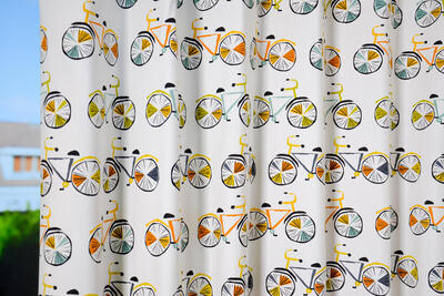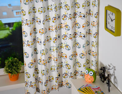 Deze gordijnstof met de naam On Your Bike is gemaakt van de beste materialen waardoor het gordijn mooi in de plooi valt.