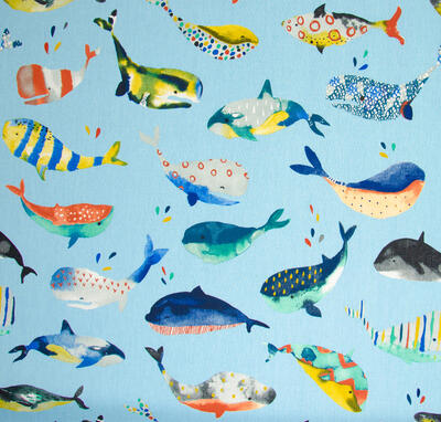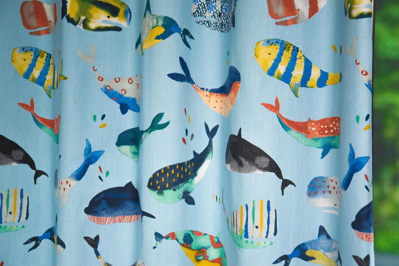 Deze gordijnstof met de naam Whale Watching is gemaakt van de beste materialen waardoor het gordijn mooi in de plooi valt.