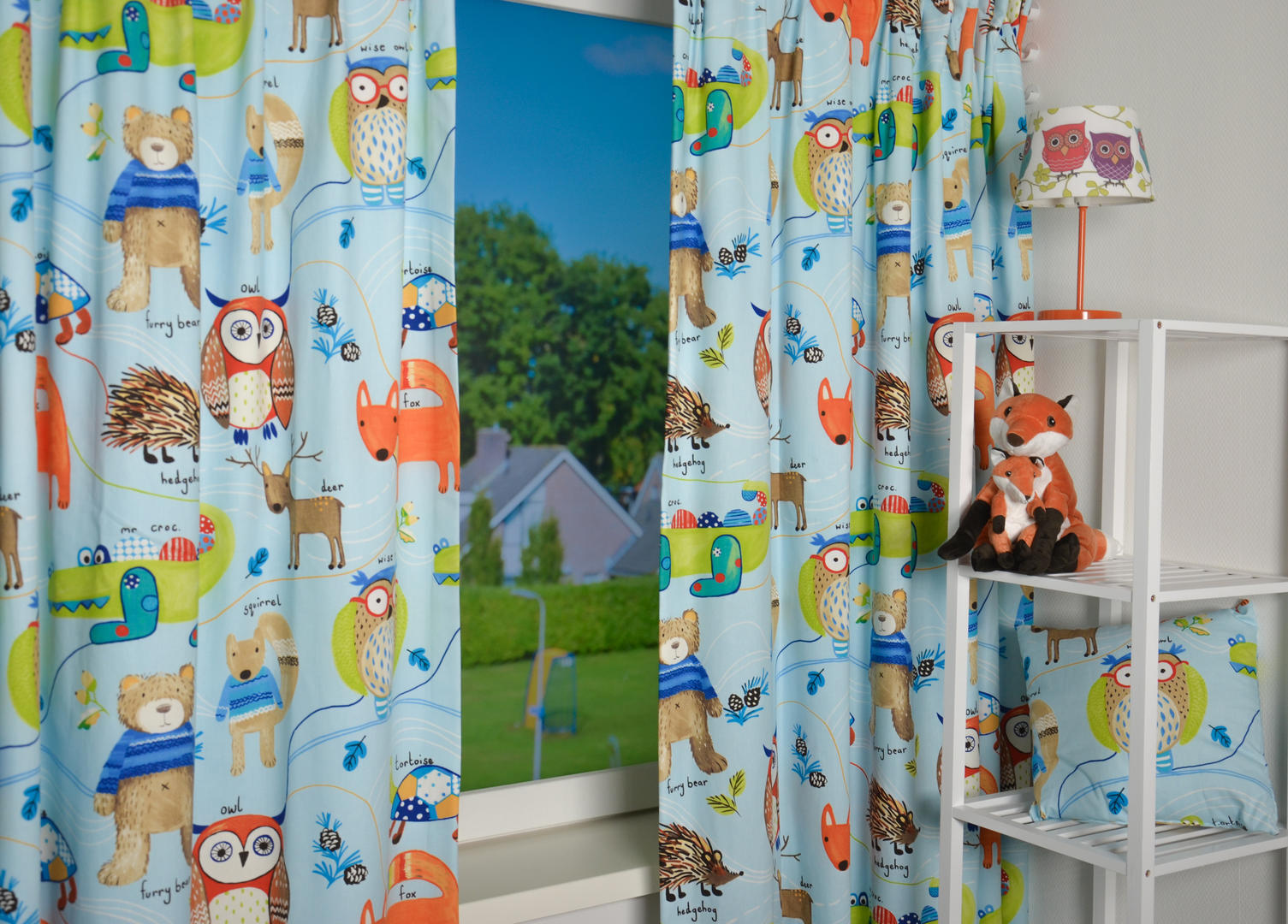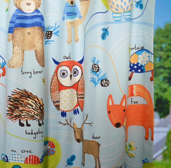 Gordijnen van een gewéldige merk! Vernieuwend en trendsettend, dat is waar dit merk voor staat. Saai en braaf kan altíjd nog. Wanneer je voor dit dierengordijn kiest, weet je dat sfeer en kleur gegarandeerd zijn! Ideaal wanneer je wanden met spack of structuur op de kinderkamer hebt, en behangen geen optie is. Op deze dierengordijnen is zoveel te zien. Door het royale patroon kan het gordijn uitstekend tot de grond gemaakt worden. De vos en de uil zijn b.v. 18 cm groot en gedrukt op matte, ietwat geruwde stof. Dat geeft een vlotte uitstraling. Leverbaar in 5 verschillende kleuren, dus jouw voorkeur zit er vast & zeker bij. Mogen deze bosdieren bij jou komen wonen?