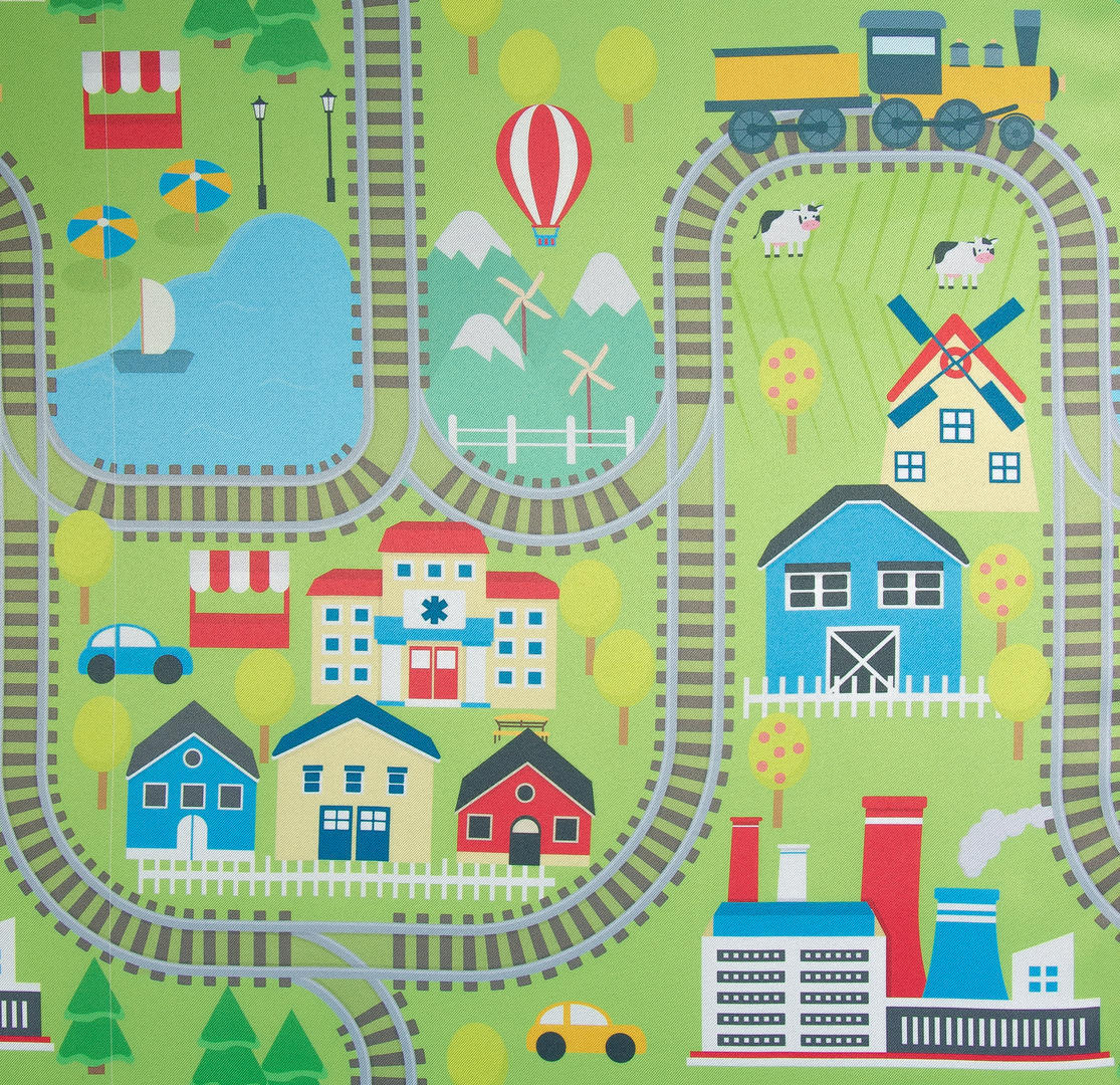 Dat geeft een ruimtelijk effect! Een eindeloze spoorbaan afgebeeld op je gordijn. Langs velden en dorpjes om in- en uit te stappen, wanneer jij dat graag wil. Wat dit gordijn extra speciaal maakt is zijn dim out effect. Dat betekent dat zonder extra voering de slaapkamer aangenaam donker wordt. De stof valt soepel en is aan de achterzijde egaal gebroken wit van kleur. De huisjes zijn +/- 8 cm groot en gedrukt op de frisse, grasgroene stof. Reis jij mee met deze avontuurlijke trein?