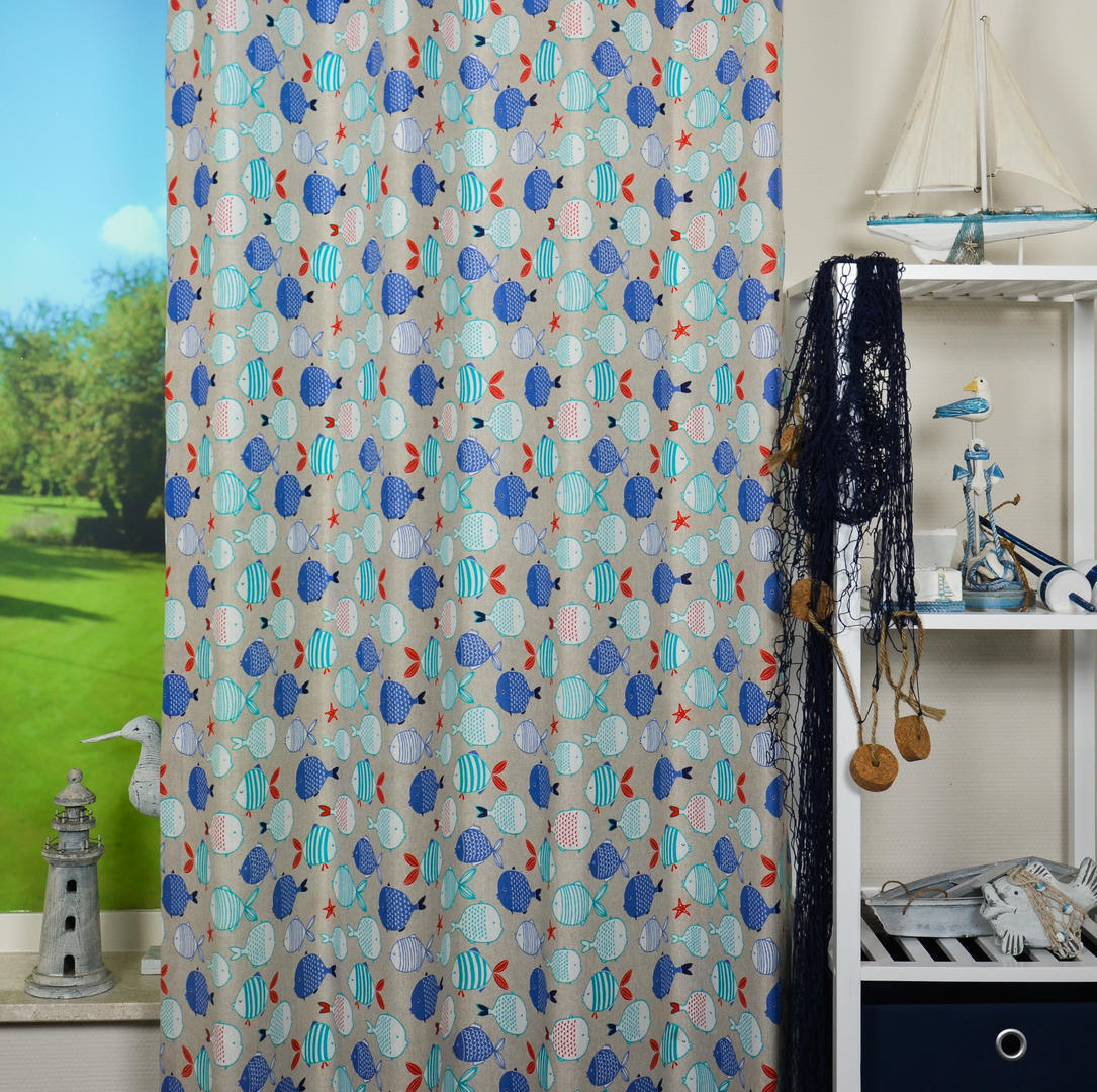 De Schoolfish is een echte eyecatcher voor de kinderkamer. De soepel vallende effen gordijnstof is gemaakt van de beste materialen waardoor het gordijn mooi in de plooi valt. De stof is kamerhoog, wat betekent dat het gordijn naadloos kan worden gemaakt. Laat voor een aangename isolatie en extra verduistering de gordijnen voeren: een verschil van dag en nacht!