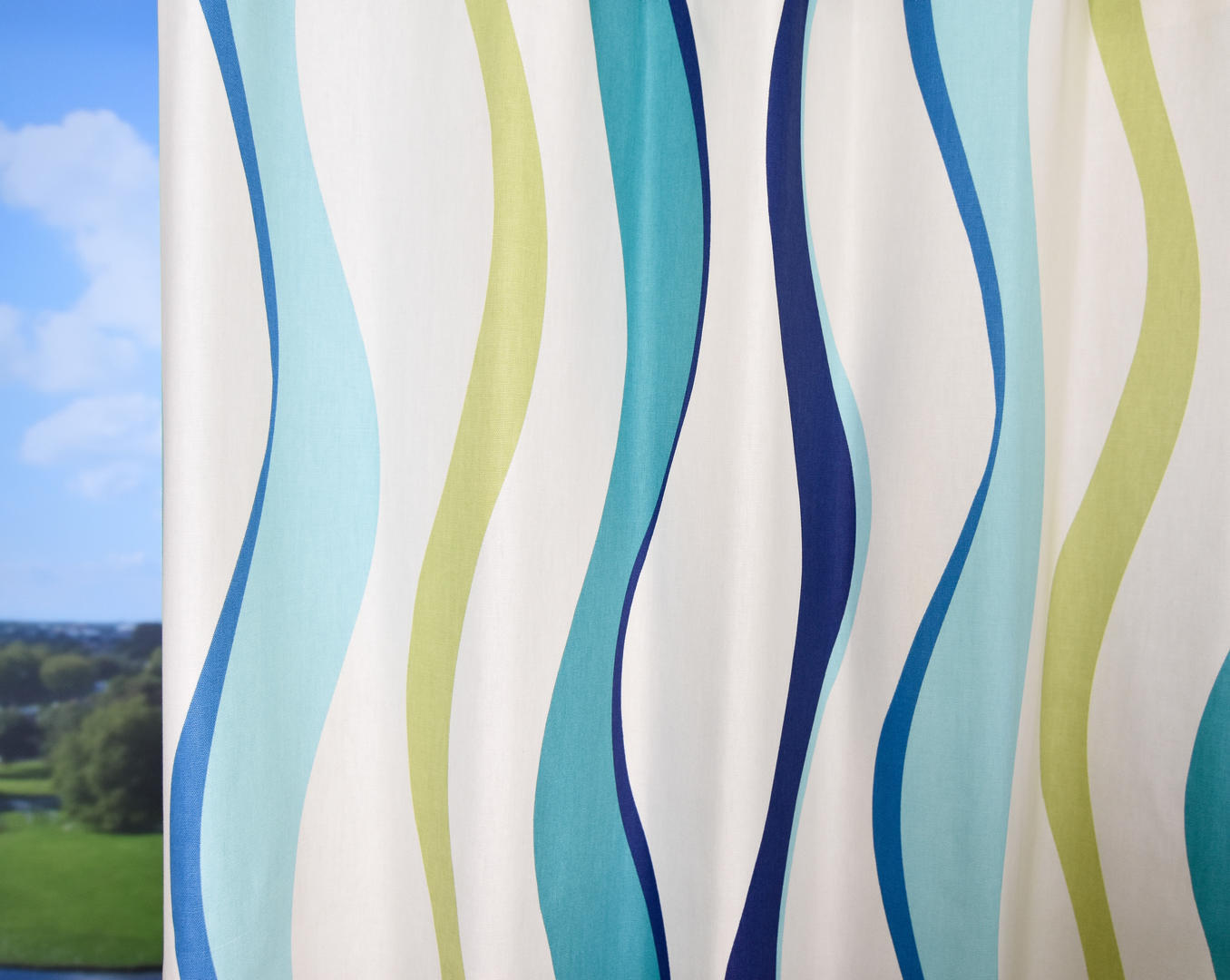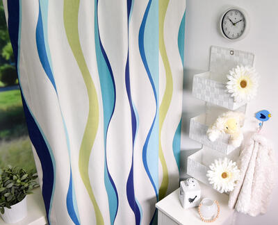 Prachtige golven dansen over dit gordijn! Vandaar de mooie naam ‘Rumba’, maar ook ‘water waves ‘ zou passend zijn. De rustige, herhalende golven vervelen nooit en zijn voor zowel een meisjes- als jongenskamer uitstekend geschikt! De ondergrond is warm witte, matte katoen en fraai dicht geweven van kwaliteit. Het gordijn valt daardoor perfect in de plooi, zelfs wanneer het verduisterend gevoerd is. Deze optie kun je aanvinken in het bestelproces. Door de tijdloze & rustgevende vorm kan je dit gordijn nog met allerlei leuk behang combineren of een gave accentwand met muurverf. Dit gordijn pakt altijd stijlvol uit!