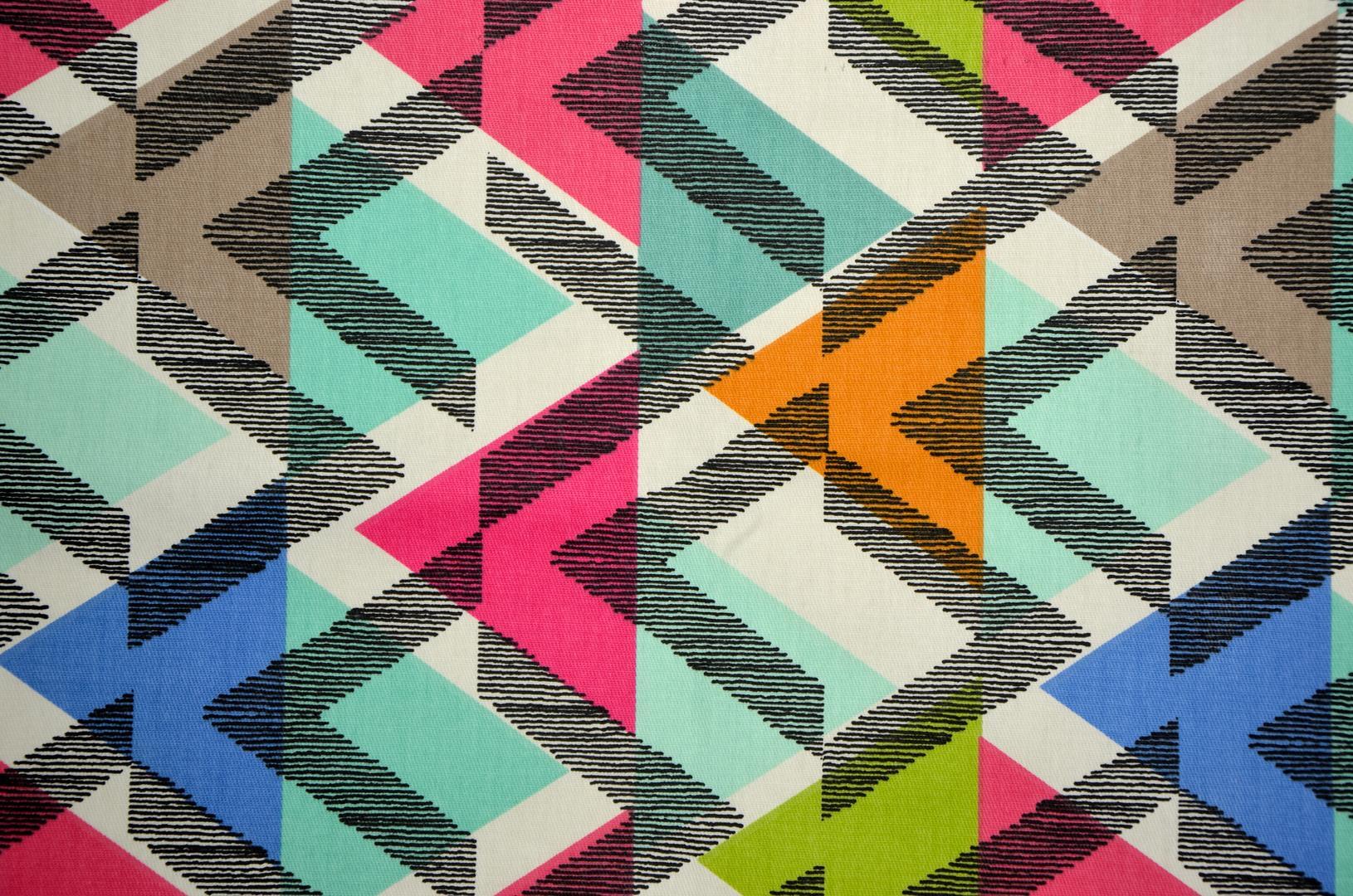 De naam van deze stof verklapt het al, deze gordijnen zijn geïnspireerd op de Scandinavische woontrend. Er wordt gespeeld met lijnen en figuren. Dat zorgt voor die grafische touch! Goed te combineren met neon kleuren of juist pastels. De print is gedrukt op dicht geweven, matte stof en leverbaar in 2 kleurcombinaties. De driehoekvorm is in de breedte 19 cm. Hier afgebeeld met bijpassende kussentjes, extra leuk!