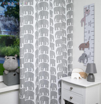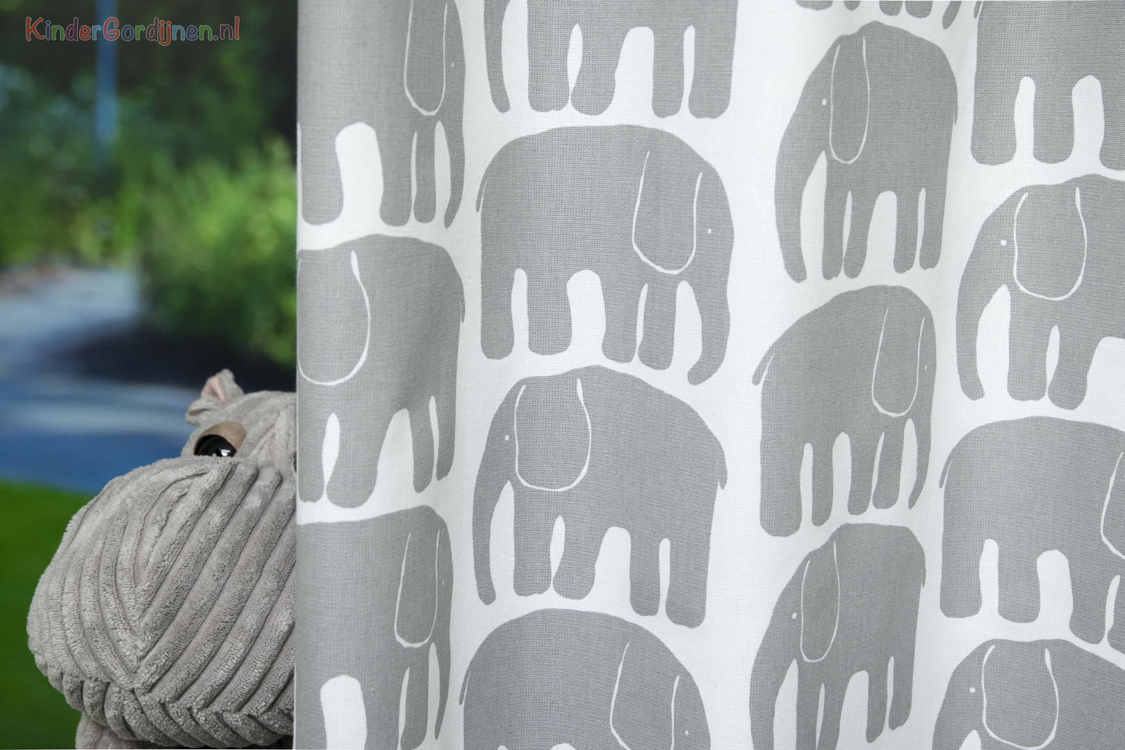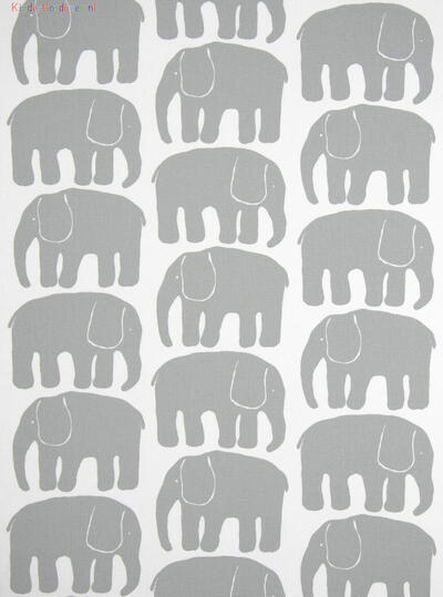 Elefantti olifant, hier als kunstzinnig dier. Wat een plezier om zo’n krachtige vorm gestileerd op je gordijn terug te zien. De Olifantjes zijn 10 cm groot en gedrukt op matte, luchtig geweven stof. Het gordijn is leverbaar in 2 kleurcombinaties, te weten warm-wit met fris middengrijs en multicolor gedrukt op dezelfde warm-witte ondergrond. Daardoor passend voor de jongens- en meisjesslaapkamer en geschikt als je niet weet “wat het gaat worden”. Het leuke van dit olifantengordijn is dat de repeterende vorm best strak aandoet en toch met een knipoog naar de kinderkamer. Kortom een gordijn voor diegene die van een rustige basis houdt en niet direct in een effen oplossing wil vallen. Voor extra verduistering graag even laten voeren.