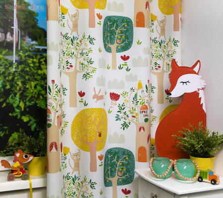 Met bloem- en bladmotieven zijn oneindige variaties aan kindergordijnen mogelijk. Van de warme roodtinten van rozen tot fleurige vormen op zachte tinten wit. Een combinatie met vlinders of vogels maakt de voorstelling extra levendig. Paddenstoelen en vrolijke bomen – al dan niet bewoonbaar – zorgen voor fantasievolle taferelen. Uilen of eekhoorntjes brengen het bos in de slaapkamer binnen.