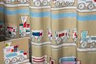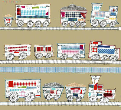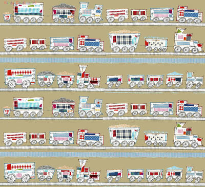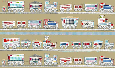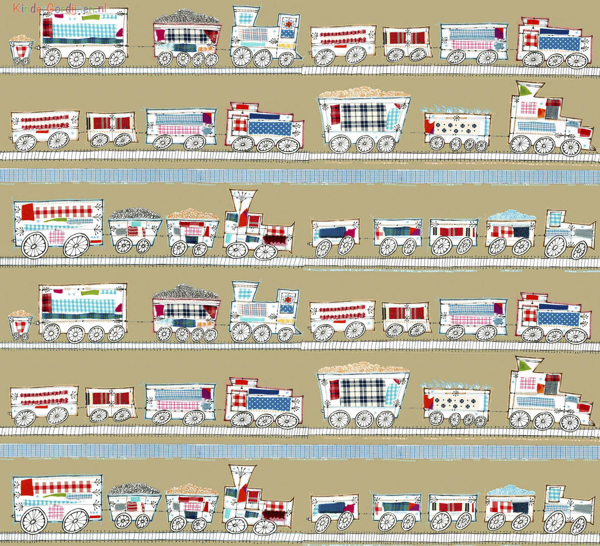 Een origineel treingordijn voor de kinderkamer, ontworpen door Hanneke de Jager. Deze beeldend kunstenares is schrijver en tevens illustrator van een aantal bijzonder leuke kinderboeken. Zij omschrijft haar stijl als: Fris, kleurrijk, levendig, speels en zonnig. Door gebruik van verschillende materialen zoals stofjes van de markt, knopen en gebreide truien, geeft zij haar illustraties iets unieks. In het patroon zie je namelijk de weergave van die leuke details. Zo is de locomotief voorzien van leuke patchwork stofjes en zig-zag steekjes rondom. Het stylen van de kinderkamer is geweldig leuk om te doen en hoe bijzonder is het om een gordijn van een échte ontwerpster te hebben! Dit kindergordijn is gedrukt op een diepe zandkleurige (haast fraai licht olijfgroene) soepel vallende stof. De print is op de voorzijde gedrukt en als je goed kijkt zie je die kenmerkende Hanneke details. Doordat de treintjes horizontaal herhalend over het getekende spoor rijden, is dit een rustig en toch heel vrolijk gordijn. De goederenwagons zijn zo'n 13 x 10 cm groot (b x h) en haast voelbaar echt gedecoreerd met wol, lapjes en steekjes. Mag jouw eigen lieveling op een bijzondere manier naar dromenland? Geef je eigen topper dan een fantasierijk Hanneke de Jager kindergordijn!