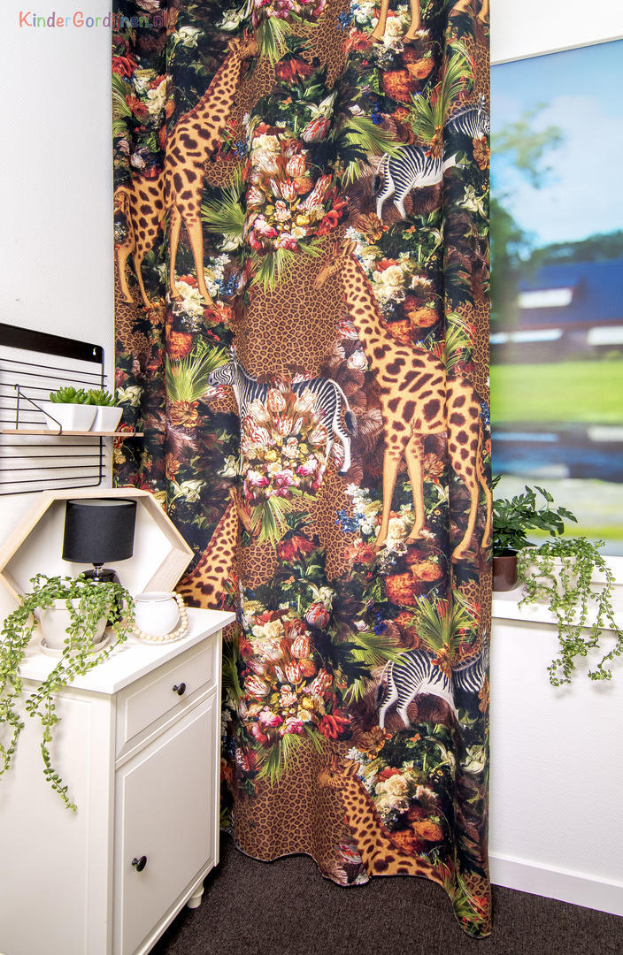 Een prachtig gordijn voor je raam! Als jij je eigen gordijnen kiest, wordt het helemaal jouw kamer. Deze gordijnstof met de naam Tropical Master is gemaakt van de beste materialen waardoor het gordijn mooi in de plooi valt. Het aantal te gebruiken banen gordijnstof van 140 cm breed wordt door ons vakkundig aan elkaar geconfectioneerd zodat het jungle en safari patroon van 132 cm mooi doorloopt. Laat voor een aangename isolatie en extra verduistering de gordijnen voeren: een verschil van dag en nacht!