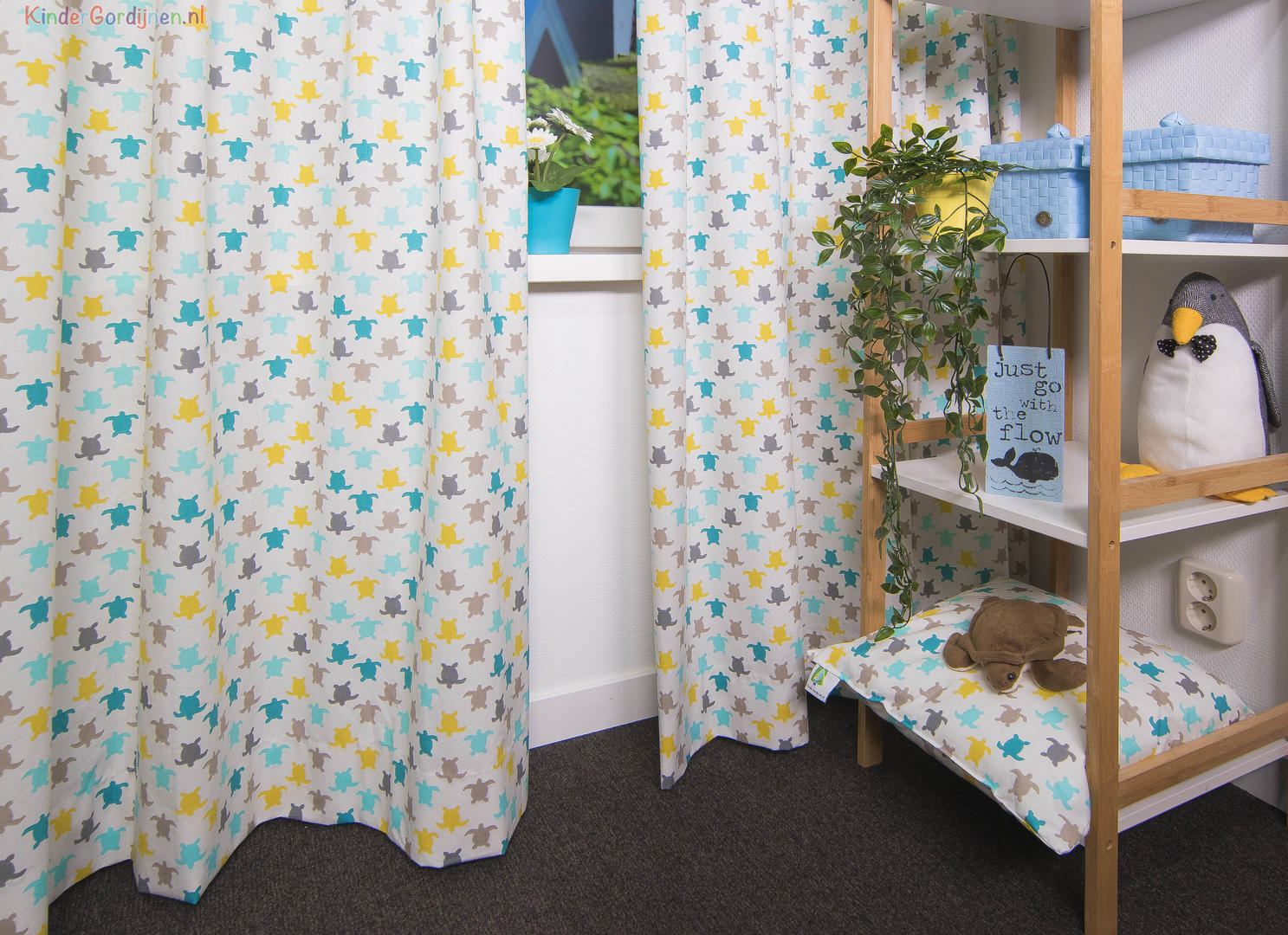 Deze gordijnstof met de naam Turtletjes is gemaakt van de beste materialen waardoor het gordijn mooi in de plooi valt.