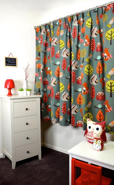 Wat een fraai nostalgisch gordijn met afbeeldingen uit vervlogen tijden! Vogel, eekhoorn en vosje zijn allemaal bosdieren uit een gezellige knusse periode. Deze tijden kunnen bij jou herleven; samen spelletjes doen, eíndeloos tekenen of met de houten trein een fantasiewereld bouwen. De stof is leverbaar in 2 kleuren: warmgrijs als ondergrondkleur of linnenlook. Het patroon is prettig royaal, een boompje is b.v. 22 cm en het vosje 17 cm groot. Genieten van de sfeer rond de kindertijd, het is zó speciaal toch? Eventueel voor verduistering of extra kleurbehoud de stof laten voeren.