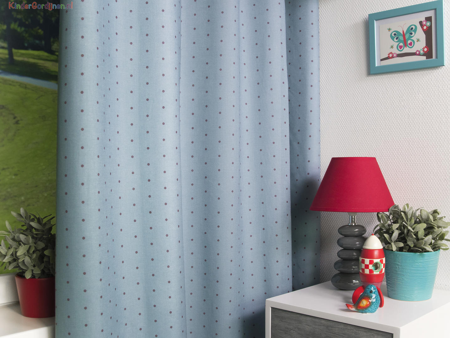 Dit superlieve en mooie kindergordijn heeft de bijna Babydot gekregen. Het kindergordijn is verkrijgbaar in 2 mooie neutrale zachte kleuren. Namelijk deze zalmroze en donkergrijs. Het materiaal dat hiervoor is gebruikt is 50% polyester en 50% katoen. Je kan dit mooie gordijn heel goed voeren met een verduisteringsgordijn zodat het gelijk één gordijn is. De kindergordijnen zoals ze hier op de foto afgebeeld zijn zijn al gevoerd met een verduisteringsstof. Hierdoor kan de kleur iets veranderen door de witte achtergrond maar wil je zeker weten hoe het er nu in het echt uit ziet zou ik een knipstaal bestellen. Hierdoor heb je het zelf in je handen en kan je bekijken of het mooi staat in de kinderkamer/babykamer.