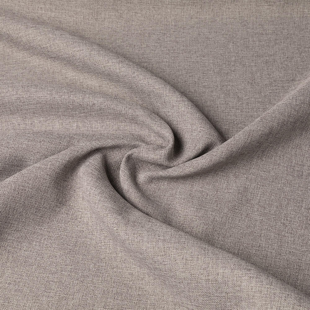 Vlamwerende en half verduisterende volumineus vallende gordijnstof met natuurlijk ogende structuur. De achterzijde van het gordijn is glad geweven.