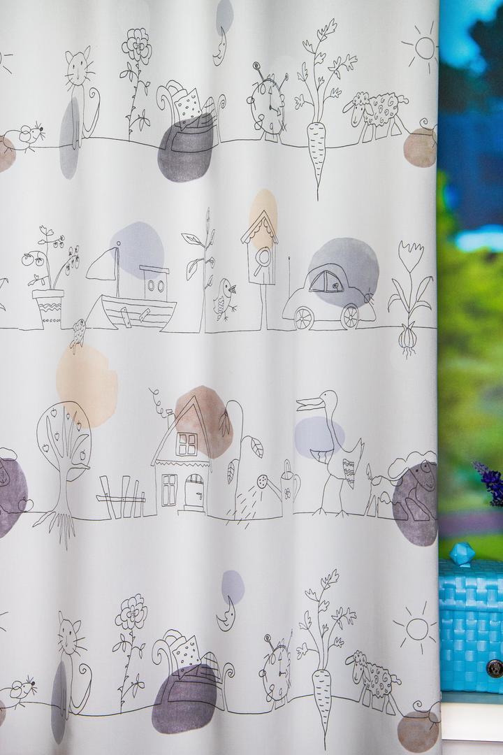 Gordijn in zachte pastelkleuren, luchtig & lieflijk! Pastel wordt veel gebruikt voor (jonge) kinderkamers omdat het zacht en vriendelijk overkomt. Wanneer je ‘de pastel’ méér power wilt geven, kan je een tint vanuit het gordijn als muurverf gebruiken. Daar creëer je een fraaie balans mee. De stof is dicht geweven, valt soepel en is door zijn samenstelling kleurecht. De tekeningetjes van het patroon zijn +/- 15 cm groot en gedrukt op de warm-witte ondergrond. Voor extra verduistering optie voeren even aanvinken.
