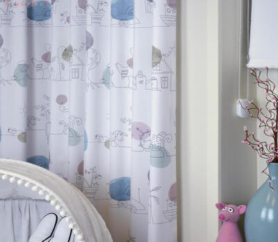 Gordijn in zachte pastelkleuren, luchtig & lieflijk! Pastel wordt veel gebruikt voor (jonge) kinderkamers omdat het zacht en vriendelijk overkomt. Wanneer je ‘de pastel’ méér power wilt geven, kan je een tint vanuit het gordijn als muurverf gebruiken. Daar creëer je een fraaie balans mee. De stof is dicht geweven, valt soepel en is door zijn samenstelling kleurecht. De tekeningetjes van het patroon zijn +/- 15 cm groot en gedrukt op de warm-witte ondergrond. Voor extra verduistering optie voeren even aanvinken.
